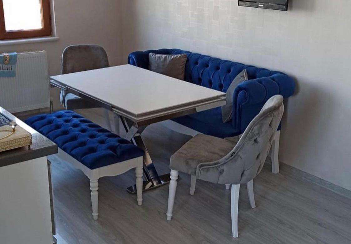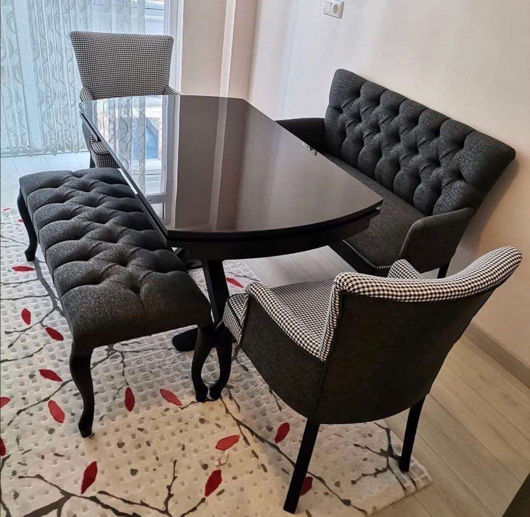 Modern Dilimli Sandalyeli Puflu Bank Takımı